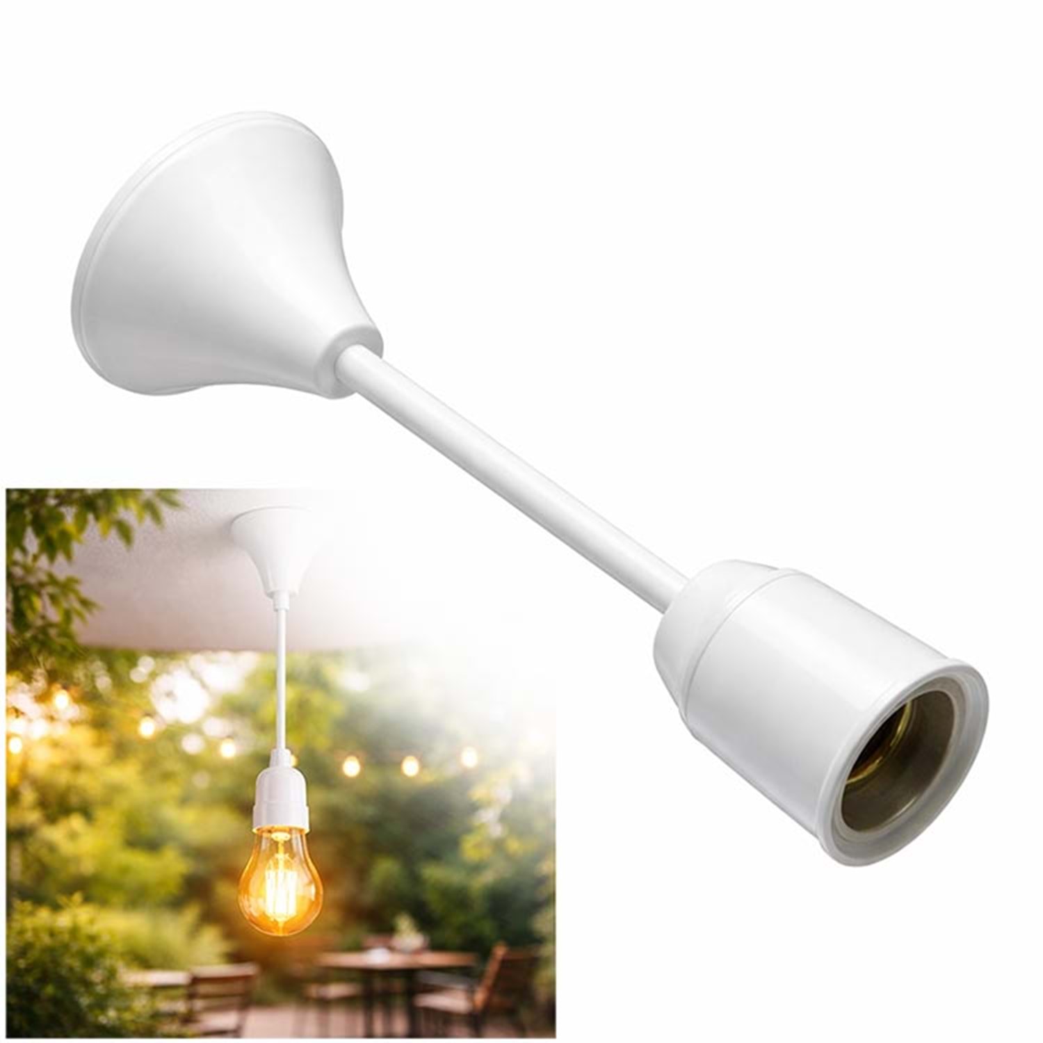 Ev, ofis, mağaza, depo ve atölye gibi alanlarda tavan aydınlatma montajı için kullanılır. Tekli ampul uygulamalarında pratik bir çözüm sunar. LED, tasarruflu veya klasik ampuller ile uyumludur.